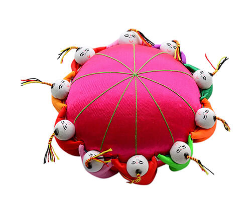Needles are so small and get lost easily at our homes or when we go outdoors. This is a beautiful pin cushion with oriental kids holding hands around the cushion, which provides a safe and easy place to store your pins. Its diameter is about four inches. Ten dolls sit together as a symbol of fertility, reunion and happiness in ancient China.