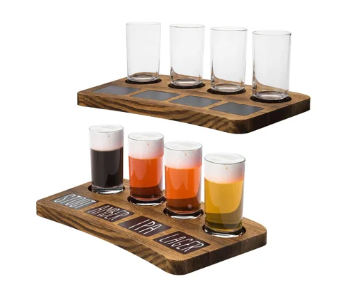 Men love to drink beer, and the best way to drink beer is by comparing all the different types and choosing your favourite one. This beer-tasting set has four 4-ounce glasses. These glasses come in a pretty acacia wood tray; you can mention the brand name on the front of the glass with chalk. He can taste and choose the best beer he likes, and it makes a great gift idea for his brothers.